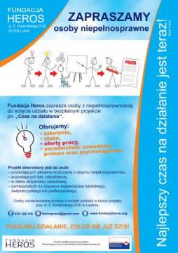 Fundacja Heros wspierająca osoby niepełnosprawne na rynku pracy zaprasza do udziału w projekcie ,, Czas na działanie"