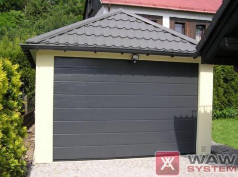 - może posiadać bramę najwyższej jakości – (Wiśniowski, Hormann) dopasowaną kolorystycznie do garażu, otwieraną według potrzeb (uchylną, rozwieraną, rolowaną)