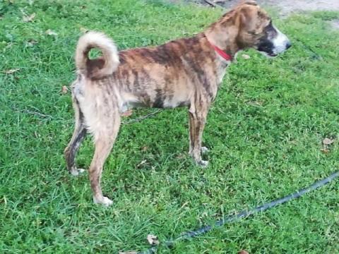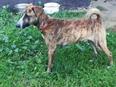 Tygrysek to młody, niespełna roczny psiak, który został znaleziony na terenach po kopalnianych, bardzo wychudzony. Usposobienie ma wesołe, jest przyjacielski wobec ludzi. Inne zwierzęta toleruje w miarę, choć zdarzają mu się chwile zazdrości. jest bardzo ładnym psiakiem ze względu na swoje tygrysie umaszczenie.
