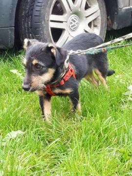 Około siedem kg nieszczęścia ze smutnymi oczyma i z klapniętymi uszkami błąkało się samotnie po polach. Co tam robiło samo, pięciomiesięczne szczenię? Możemy się tylko domyslać. I możemy się też tylko domyślać, co przeżył. Po wielu próbach udalo sie go w koncu złapać.