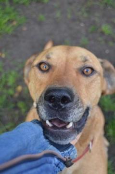 Scooby ma około 2-3 lata i jest dużym dostojnym psiakiem, bardzo przyjaznym. Znaleźliśmy go po nieudanej adopcji pod bramą schroniska po tym jak ponad miesiąc tułał się w okolicy - wychudzonego i słabego, na skraju śmierci głodowej. Na szczęście jest już lepiej.