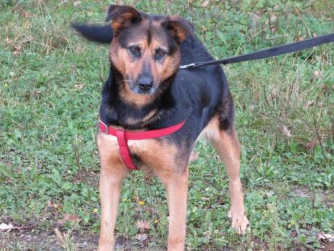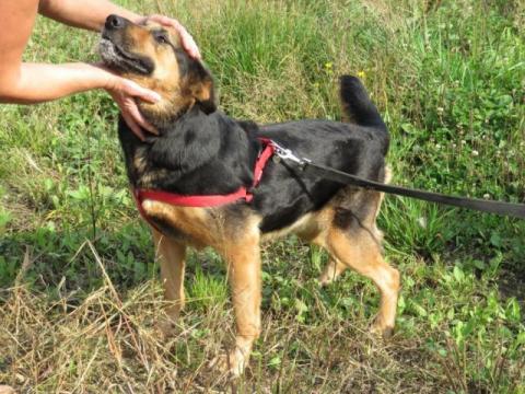 Misza ma na pewno ponad 5 lat. Misza to bardzo fajna suka w stosunku do ludzi co niestety nie przekłada się na stosunek do psów. Być może duży pies dałby sobie z nią rade ale mały nie ma szans. Z tego co wiemy, sunia miała właściciela ale wyjechał on zagranicę a sunię pozostawił samą sobie. Przez jakiś czas Misza błąkała się na terenie działek jednej z gmin i niestety pewnego dnia jakiś facet chciał potraktować ją jakąś rurą i w taki sposób trafiła po pewnym czasie do naszego schroniska.