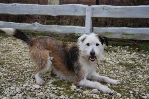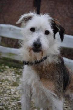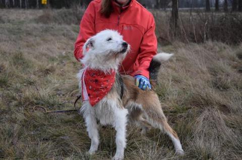 Karo młody, sympatyczny psiak w typie teriera szuk