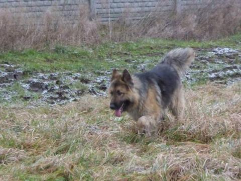 BRYLANT, zostal uwoniony z lancucha. Ma dopiero rok, jest pieknym psem w typie dlugowlosego owczarka niemieckiego. Bbardzo przyjacielski, wesoly, do przytulania.