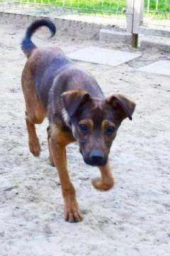 Szczeniaczek ok. 6- miesieczny szuka Domu. Wesoły Psiak, energiczne pełne radości Szczenię czeka, aby obdarować Cię swoją miłością. Kocha Wszystko i Wszystkich, jest ciekawy Świata.