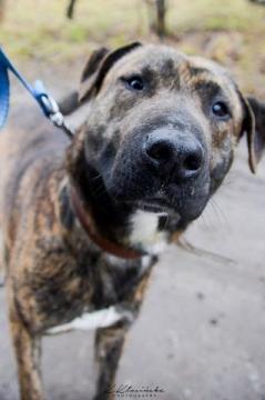 Tajson to nietypowej urody, młody, około 2 letni pies. Trafił do schroniska z okolicznej gminy, gdzie prawdopodobnie został porzucony. Względem człowieka, Tajson jest bardzo przyjacielski, ciągle domaga się kontaktu. Nie zważając na swoje gabaryty, lgnie, a nawet próbuje wchodzić na kolana. Jest bardzo pocieszny i przyjacielski. Niestety Tajson nie toleruje żadnych zwierząt, lecz po odpowiednim zapoznaniu potrafi być przyjacielski w stosunku do zapoznanego psa. Potrzebuje przyuczenia w zakresie posłuszeństwa. Czy mimo wad uda się mu znaleźć nowy dom? Czy ktoś go pokocha?