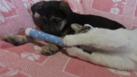 Zorka to 3 m c suczka gdy dorośnie będzie średniej wielkości. Zorka uwielbia zabawę z człowiekiem i innymi zwierzakami. Przy adopcji obowiązuje umowa adopcyjna.