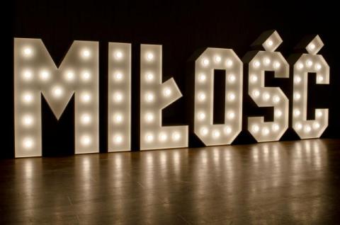 Napis MIŁOŚĆ w stylu RETRO podświetlany żarówkami LED