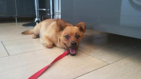 Całusek ma ok. 3 lat, toleruje psy i koty, chodzenie na smyczy nie stanowi problemu, zachowuje też czystość w domu.