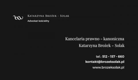 Kancelaria prawno-kanoniczna, adwokat kościelny mgr lic. Katarzyna Brożek-Solak świadczy kompleksowe usługi w zakresie prawa kanonicznego, w szczególności w sprawach o stwierdzenie nieważności małżeństwa.