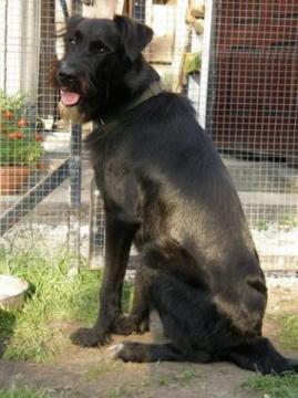 Piękny, wielki pies, w typie sznaucera olbrzyma.