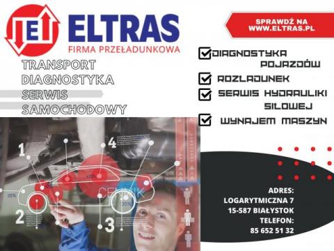 Firma ELTRAS zapewnia klientom najwyższej jakości usługi motoryzacyjne w zakresie: diagnostyki pojazdów i maszyn drogowych, budowlanych, rolniczych, usług transportowych, w tym transportu ciężarowego oraz niskopodwoziowego, usług rozładunkowych, usług mechaniki samochodowej oraz serwisowych w zakresie naprawy i wymiany przewodów hydrauliki siłowej w pojazdach i maszynach. Firma ELTRAS dysponuje zapleczem technicznym oraz własnymi pojazdami ciężarowymi, naczepami, maszynami przeładunkowymi oraz operatorami i kierowcami, którzy zrealizują każde zlecenie w umówionym czasie ,bezpiecznie i profesjonalnie. Firma ELTRAS jest właścicielem stacji kontroli pojazdów ELTRAS zlokalizowanej przy ul. Logarytmicznej 7 w Białymstoku, która oferuje przeglądy techniczne oraz diagnostyczne samochodów osobowych, dostawczych, ciężarowych, maszyn, autobusów i motocykli. Stacja diagnostyczna ELTRAS wyposażona jest w nowoczesną ścieżkę diagnostyczną pozwalającą na rzetelną ocenę wszelkich parametrów technicznych pojazdu, w tym także ocenę stanu instalacji gazowej, złącz do przyczep, analizę emisji spalin, emisji hałasu itp. Wszystkie pojazdy przystępujące do przeglądu technicznego w stacji kontroli pojazdów ELTRAS mogą skorzystać z możliwości odpowiedniego przygotowania pojazdu do badania technicznego w warsztacie samochodowym znajdującym się w budynku stacji diagnostycznej. Warsztat samochodowy należący do ELTRAS oferuje wszelkie naprawy mechaniczne pojazdów, w tym także usunięcie drobnych usterek do przeglądu technicznego czy dokonanie wymiany elementów tj, żarówki, bezpieczniki itp. Możliwość dokonania naprawy pojazdu w trakcie przeglądu technicznego zapewnia klientom stacji diagnostycznej ELTRAS wymierne korzyści związane z brakiem ponownej wizyty w stacji diagnostycznej oraz ponoszenia dodatkowych opłat za ponowne przystąpienie do przeglądu. Firma ELTRAS podejmuje starania w celu zapewnienia klientom kompleksowej oferty usług motoryzacyjnych, usług transportowych, usług rozładunkowych, usług diagnostycznych i usług serwisowych. Firma ELTRAS świadczy usługi serwisowe w zakresie wymiany, naprawy i przystosowania przewodów hydrauliki siłowej w pojazdach i maszynach. Stanowisko serwisowe do zakuwania przewodów umożliwia przystosowania przewodu o dowolnym przekroju, a szeroki asortyment produktów do przystosowania przewodów dostępny na miejscu pozwala na skrócenie czasu naprawy, a tym samym czasu przestojów pojazdów i maszyn. Serwis przewodów hydrauliki siłowej ELTRAS świadczy usługi z dojazdem do klienta lub na miejsce awarii po wcześniejszym telefonicznym uzgodnieniu warunków z obsługą serwisu. Firma ELTRAS dokłada wszelkich starań, aby zapewnić klientom najwyższy poziom obsługi, najwyższą jakość usług oraz korzystne warunki współpracy. Oferta usługowa firmy ELTRAS dostępna jest na firmowej stronie internetowej www.eltras.pl lub u obsługi biura pod numerem 85 652 51 32.