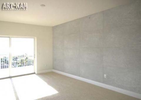 Idealny materiał wykończeniowy do nowoczesnych wnętrz, okładziny ścienne Beton Flex. Cienki, betonowy fornir w elastycznych arkuszach 81cm x 54cm, jest dziecinnie prosty w montażu. Trwały, odporny, lekki. Na ścianach wyglądają jak równo przycięte, betonowe płyty. Gładki pod ręką, ciepły w dotyku. Do łazienek, kuchni, salonów itp. Cena arkusza – 49,50zł. Pełna informacja na www.art-kam.com.pl