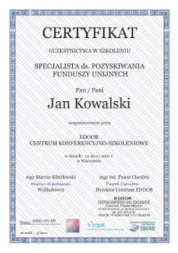 Centrum Szkoleniowe EDOOR jest zarejestrowaną Instytucją Szkoleniową. Numer wpisu do Rejestru Instytucji Szkoleniowych: 2.14/00222/2008.
