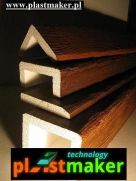 imitacje drewna, belki rustykalne, lekkie i łatwe w montażu, elementy dekoracyjne drewnopodobne, maskownice- kształty, przekroje i długości na życzenie klienta. Panele boazeryjne ścienne imitujące drewniane deski na wzór starego drewna.