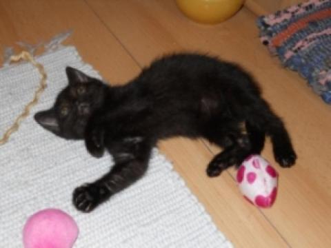 Kotki jedzą samodzielnie karmę suchą i mokrą, potrafią korzystać z kuwety. Są odrobaczone i w najbliższym czasie będą zaszczepione. Jedna koteczka ma futerko idealnie czarne, kocurek i druga kicia są czarno-dymno-pręgowane. Są bardzo proludzkie, rozmruczane, szybko aklimatyzują się w nowym otoczeniu.