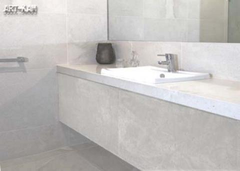 Fantastyczny materiał wykończeniowy do łazienek w dużych płytach 125cm x 62cm o grubość zaledwie 1,5mm (nie zabiera miejsca w pomieszczeniu). Bardzo naturalny wygląd, w dwóch wersjach: efekt piaskowca i efekt betonu. Kolory naturalne. Odporny na wodę. Sprasowane naturalne ziarno kwarcowe. Uniwersalne zastosowanie: na ściany (również do kabin prysznicowych), na podłogi (również na ogrzewanie podłogowe), na meble (blaty łazienkowe, fronty meblowe, zabudowy). Okładziny tak jak żaden inny materiał dają możliwość tworzenia łazienek monolitycznych – ściany, podłogi, blat, meble z tego samego materiału. Okładziny są dostępne również w wersji , do wybarwiania na dowolny kolor. Więcej informacji na www.art-kam.com.pl
