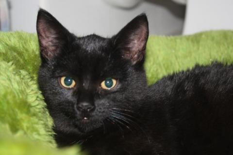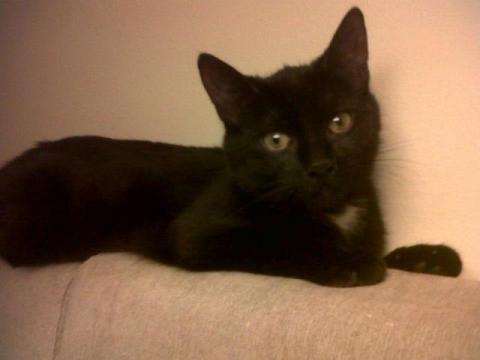 Kotka (5,5msc.), czarna z białą "obróżką" i plamką na brzuchu .