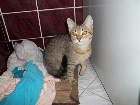 Jesienią podrzucono ją do piwnicy w bloku. Tamtejsi mieszkańcy zabronili ją dokarmiać mówiąc wprost, że szybciej zdechnie. Uratowała ją starsza pani, która jednak nie może jej zatrzymać, min. z racji posiadania już kotów. Jeśli się nikt nie znajdzie, wiosną kotka zostanie wypuszczona do lasu.