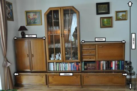 Regał składa się 6 segmentów (trzy szafki na dole plus nadstawki), istnieje możliwość ustawienia każdego z nich osobno, pakowny, elegancki. Witryna posiada sprawne podświetlenie. Wymiary naniesione na zdjęcie. W razie jakichkolwiek pytań proszę o kontakt 606271133