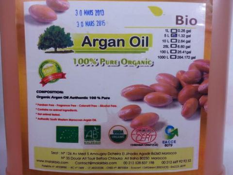 uważaj na podróbki oleju arganowego - w 90% mieszanego ze spożywczym olejem arganowym lub będący całkowicie olejem spożywczym arganowym.