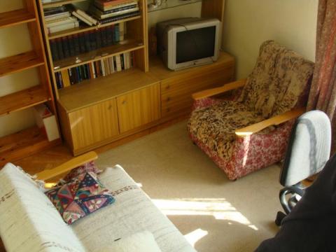 Jednoosobowy pokój (gabinet) w domku jednorodzinnym, umeblowany. W pokoju jest telewizor z pakietem kanałów Cyfrowego Polsatu. Wejście do niego znajduje się na piętrze, na przeciwko łazienki. (widać na zdjęciu)