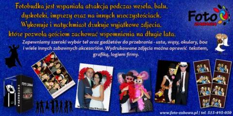 Fotobudka to nowa, niespotykana dotąd atrakcja imprezowa. Goście mają do wyboru całą masę zabawnych gadżetów do przebrania między innymi: boa, kapelusze, okulary, wąsy. Do wyboru mamy kilkanaście kolorowych teł na których można się uwiecznić. Różnorodność oraz jakość wykonywanych zdjęć zaskoczy wszystkich. Zaletą Fotobudki jest to, że zdjęcia drukowane są od razu po ich wykonaniu, a każdy gość otrzymuję pamiątkę z imprezy. Istnieje możliwość wstawienia daty, miejsca czy logo firmy.