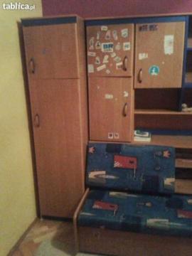 Witam. Tak jak widać na zdjeciach mam do sprzedania zestaw mebli składający się z trzech części, łóżko jest wysuwane. Rączki do zostały urwane lecz nie ma problemu z jego wysunięciem. Meble należały do dziecka dlatego znajduje się na nich troche naklejek, da sie je oczywiście usunąć. Poza tym kilka niewidocznych rysek itp. Do odbioru osobistego w lublinie lub możliwość wysłania po przez firmę przeworzącą meble na koszt kupującego. W razie pytań proszę o kontakt