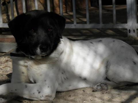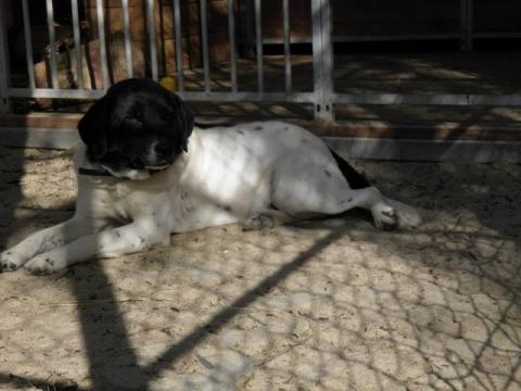 Presto - radosny łaciaty czarno-biały piesek troszkę w typie psa myśliwskiego. Idealny na towarzysza oraz stróża domowego bezpieczeństwa.