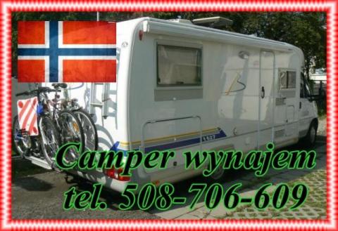 Oferuje camper do odbioru w Trondheim w Norwegii. Do wynajęcia Fiat ducato 2.8 td buerstner komfortowy wygodny camper dla 5 osób, posiada kuchnie łazienkę ogrzewanie postojowe tv wysuwany bagażnik na rowery markizę zewnętrzną. Minimalny czas wynajęcia to 7 dni cena za dobę 500 zł. Proszę dzwonić 508-706-609 lub pisać na email rafaelr@onet.pl