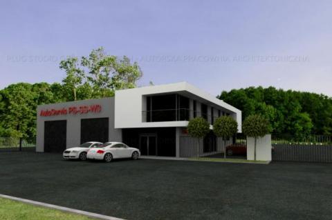 Auto serwis na 6-10 stanowisk oraz duża część mieszkalno-usługowa.