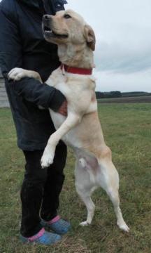Bajer to młody, zdrowy labrador. Jest żywiołowy, wesoły, wiecznie uśmiechnięty. Uwielbia zabawę, najbardziej podoba mu się aportowanie. Bajer jest pozytywnym psem, lgnie do człowieka. Jest łagodny w stosunku do dzieci.