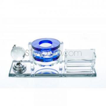 Przedmiotem aukcji jest ekskluzywny wizytownik biurkowy. W całości wykonany ze szkła, z ogromną precyzją szczegółów stanowi gwarancję doskonałej jakości. Wizytownik posiada niezbędne do optymalnej organizacji miejsca na biurku elementy w postaci: miejsca na wizytówki, przybory do pisania oraz dekoracyjny globus wykonany ze szkła