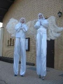 Podczas ceremonii Pierwszej Komunii Świętej aniołki na szczudłach mogą asystować podczas wyjścia z kościoła i pozować do bardzo szczególnych zdjęć komunijnych.