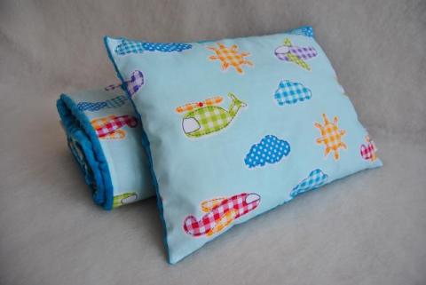 Kołderka o wymiarach 75x100 (+/-2 cm) oraz poduszka 30x40(+/-2 cm). Dla dzieci i niemowląt, kocyk idealny do wózka, łóżeczka czy kołyski. Sprawdza się jako mata. Lekki i bardzo miły w dotyku.