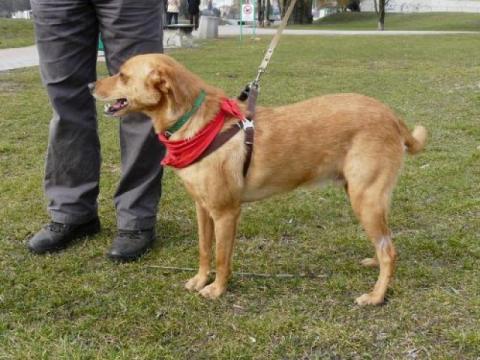 Obecnie psiak przebywa w domu tymczasowym i czeka na nowy, odpowiedzialny dom.