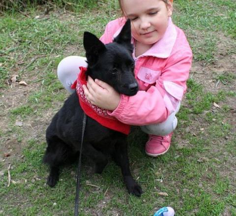 Pola jest młodziutką suczką w typie schipperke, średniej wielkości; ma ok. 1,5 roku, waży 8,40 kg.