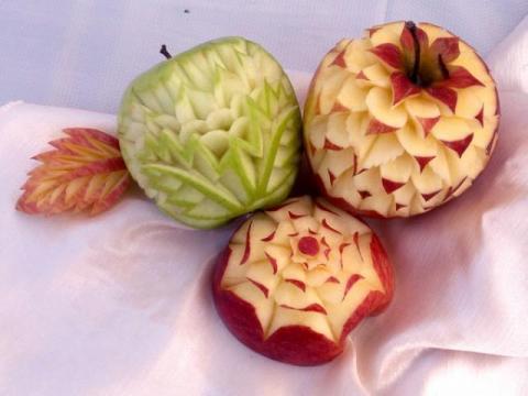 - rzeźbienie motywów kwiatowych w owocach: arbuz, melon
