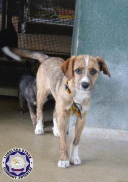 Do adopcji sunia w wieku ok. 5 miesięcy. Sunia gdy dorośnie będzie wielkości mniej teriera niemieckiego. Prawdopodobnie to mieszaniec terriera, jest pięknie umaszczona i posiada lekką budowę ciała. Sunia jest odrobaczona, zaszczepiona na choroby wirusowe oraz będzie zaczipowana.