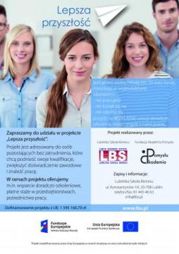 Zainteresowane osoby zapraszamy do kontaktu telefonicznego 577-174-971 , mailowego lepszaprzyszlosc-ap@wp.pl lub osobiście w biurze mieszczącym się przy