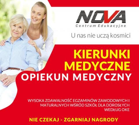 NOVA CE zaprasza do policealnej szkoły zawodowej na kierunek Opiekun medyczny.
