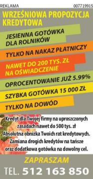 oferta dla rolników NA OŚWIADCZENIE WYSTARCZY TYLKO NAKAZ PŁATNICZY, wysoka przyznawalność,oprocentowanie juz od 5,99%,