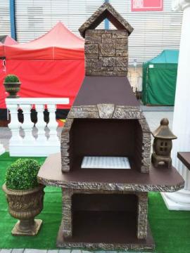 Grill bardzo dobrze prezentuje się zarówno jako wolnostojący ale jest też możliwość przedłużenia komina w celu podłączenia do altanki.