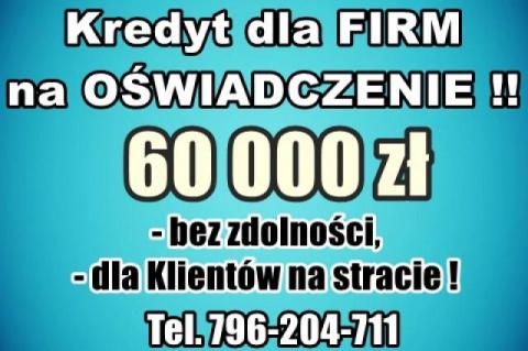 Kredyty dla FIRM na UPROSZCZONYCH PROCEDURACH 60 000 zł – na oświadczenie! Cała Polska!