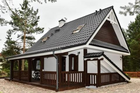 Dom według projektu Z 39 to tradycyjny lecz jednocześnie bardzo elegancki dom drewniany. Tuż przed drzwiami wejściowymi znajduje się weranda, na której można relaksować się i spędzać wolny czas.