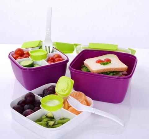 Z praktyczną miską wewnętrzną (330 ml) pojemnikiem z pokrywą (40 ml) np. na sos.