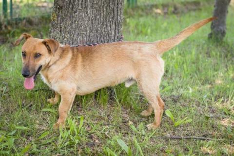 Jasiek- miły 8-o miesięczny , nieduży piesek o wydłużonej sylwetce. Połączenie jamnika, labradora i czegoś tam jeszcze. Długi biszkoptowy wesołek. Bardzo przyjazny w stosunku do ludzi. Uwielbia bawić się z innymi psami, z racji tego doskonały byłby jako towarzysz dla drugiego wesołka o równie łagodnym usposobieniu. Na smyczy chodzi dość dobrze, czystości w domu jeszcze się uczy.