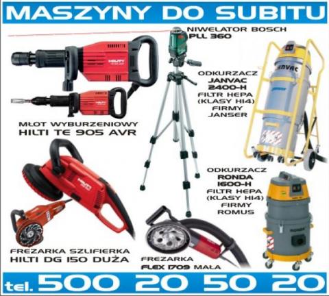 Profesjonaly sprzęt i odkurzacze zbierające pył powstający podczas pracy.