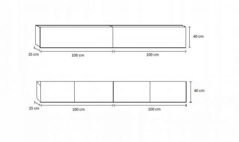 Zestaw składa się z 4 elementów: dwie szafki wiszące górne oraz dwie szafki wiszące dolne