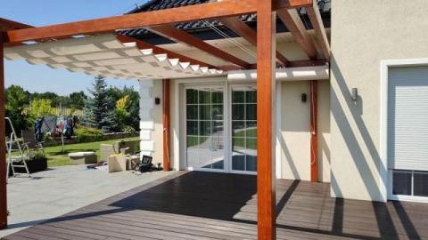 Nowoczesne zadaszenie tkaninowe do konstrukcji klienta - to doskonała propozycja pod względem funkcjonalnym i ekonomicznym na zadaszenie pergoli.